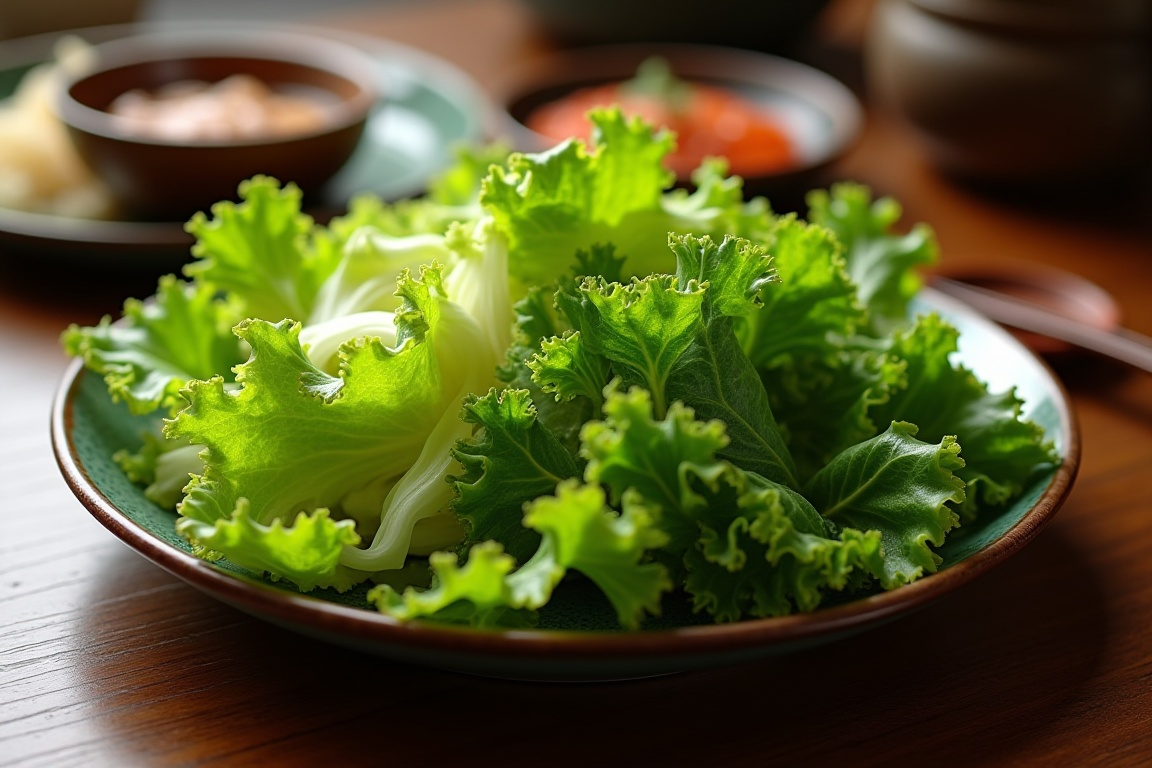 - 상추(상추): 가장 흔하고 사랑받는 쌈 채소, 돼지고기와 특히 잘 어울립니다