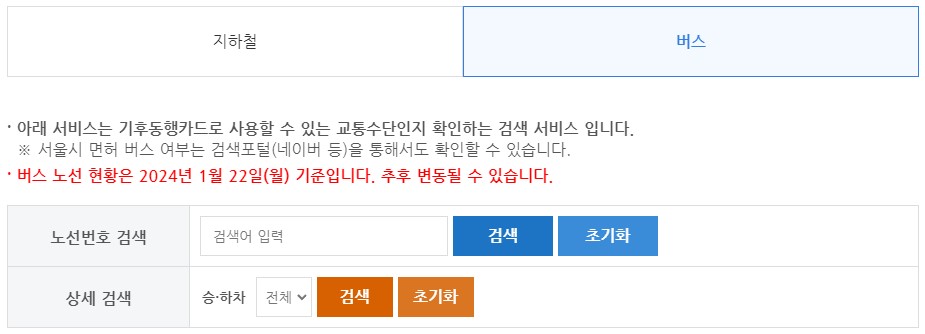 - 실물 카드로만 이용 가능 (모바일 교통카드 사용 불가)