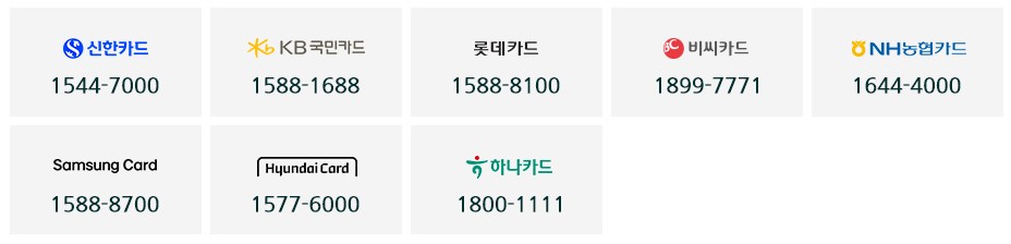 - 카드사별 고객센터: 발급받은 카드사의 공식 고객센터로 문의