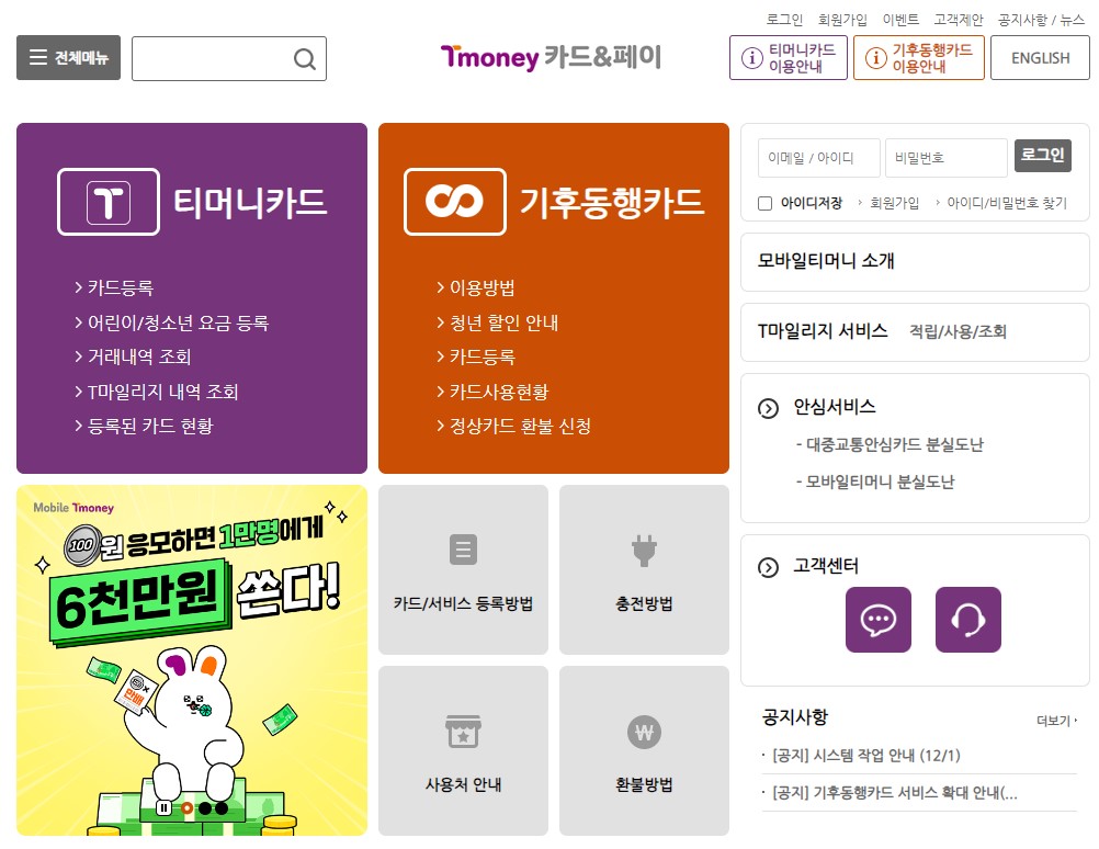 발급받은 카드는 “티머니 카드&페이” 홈페이지에 등록해야만 월 부담 한도가 적용됩니다.