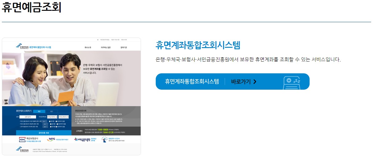 - 은행연합회 통합조회 시스템 이용: 은행연합회의 휴면계좌 통합조회 시스템에서도 본인의 계좌를 확인할 수 있습니다.