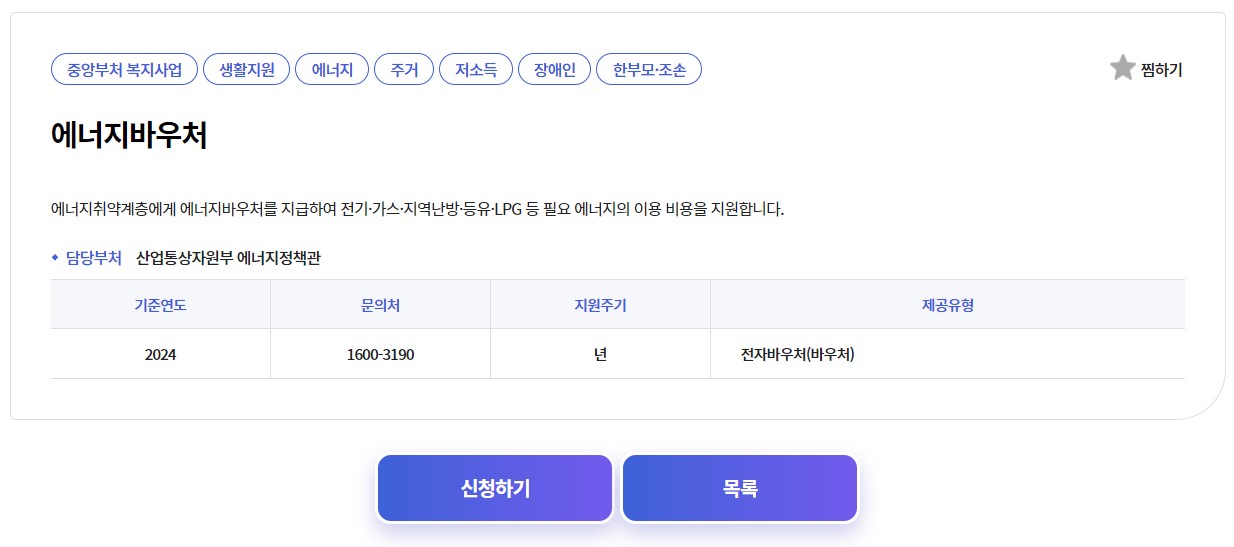 - 지원 항목: 난방용 기름, 도시가스, 석탄, 연탄, 전기 등
